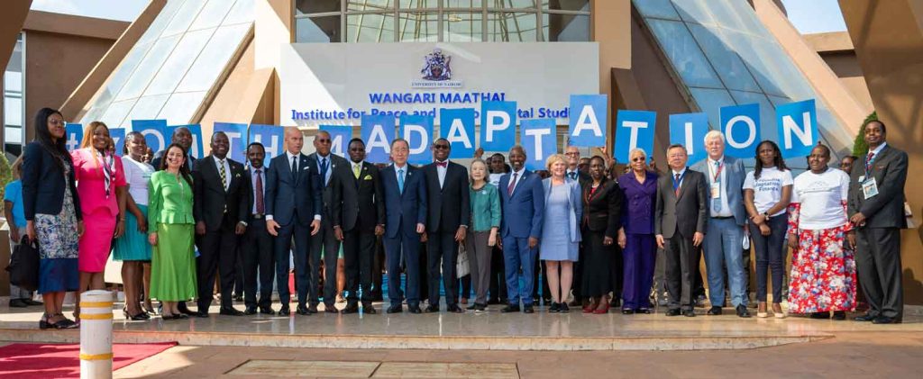*** African Development Bank President Adesina with former UN Secretary General Ban Ki Moon, other global climate champions and African youth at the University of Nairobi’s Wangari Maathai Institute of Peace and Environment ***