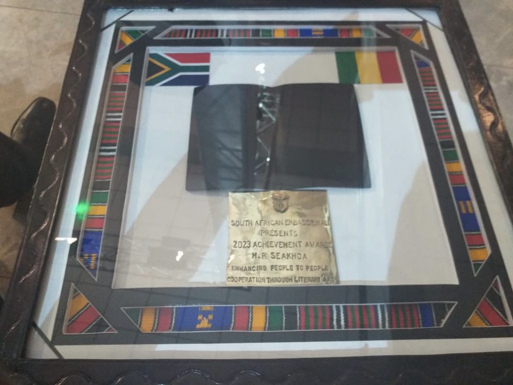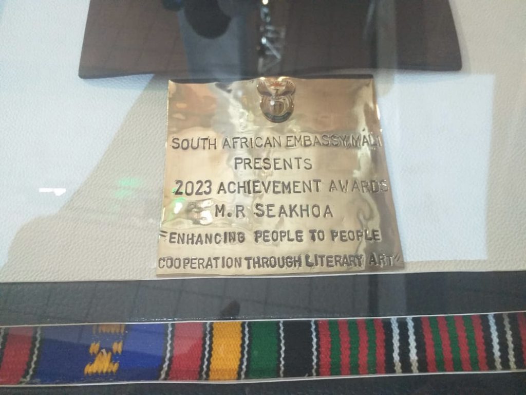 *** The lifetime Achievement Award Morakabe Seakhoa was recognised with by the Acting South African Ambassador to Mali, Ambassador, H.E Dlakuva ***