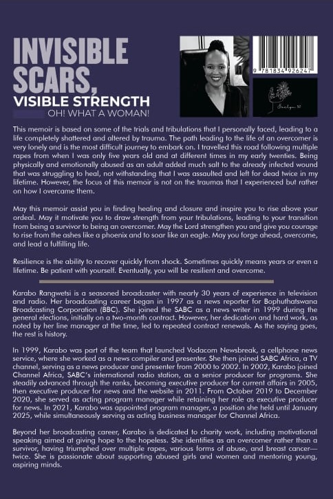 A new memoir is set to move the hearts of South Africans and readers around the world with its story of courage, endurance, and spiritual triumph. In Invisible Scars, Visible Strength, Karabo Rangwetsi bares her soul in a deeply personal account that journeys through trauma, loss, and survival — and ultimately towards faith, healing, and empowerment.