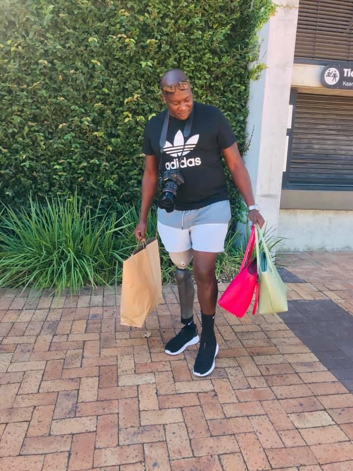 “At that time people were giving me money to buy the things I needed. So I collected all the money and went to Mr Price and bought plain T-shirts, which I then sent to a friend to print the message ‘With a T-shirt like this, who needs a leg?’”