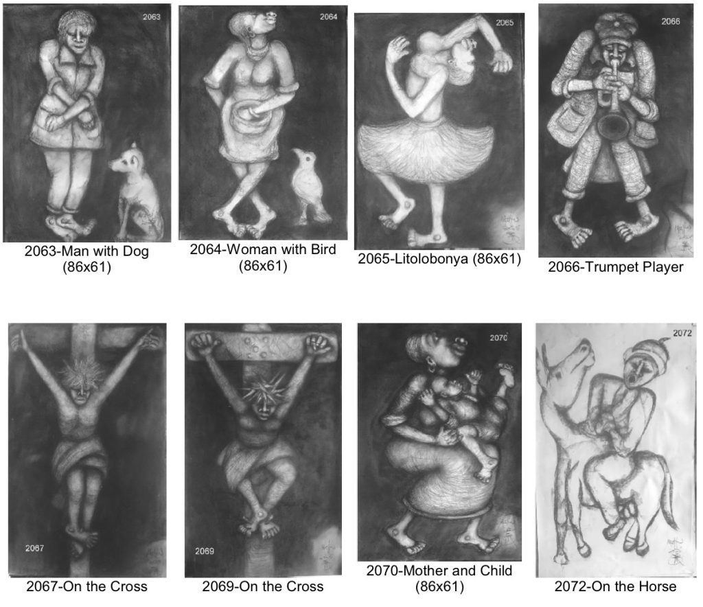 Across all this movement, one thing remained constant: he never left himself behind. His work stayed rooted in Basotho identity, layered with symbolism, distortion, humour, and spirituality. Often described as surreal or expressionist, his art resists easy categorisation. It does not ask to be understood quickly – it asks to be sat with.