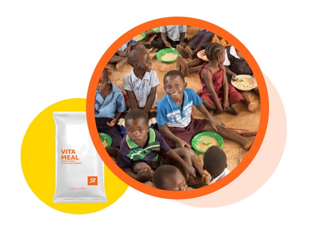 VitaMeal is a nutrient-rich, non-dairy, vegetarian meal formulated specifically to feed malnourished children. Its core ingredients are also carefully selected to match the staple diet in each region, helping to fit the unique tastes and cultures of different countries. Each bag contains 30 child-sized meals, helping to provide a child with a healthy meal each day for an entire month.