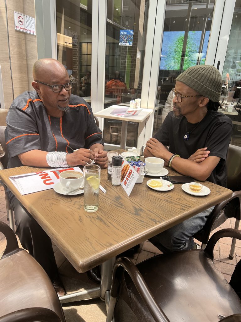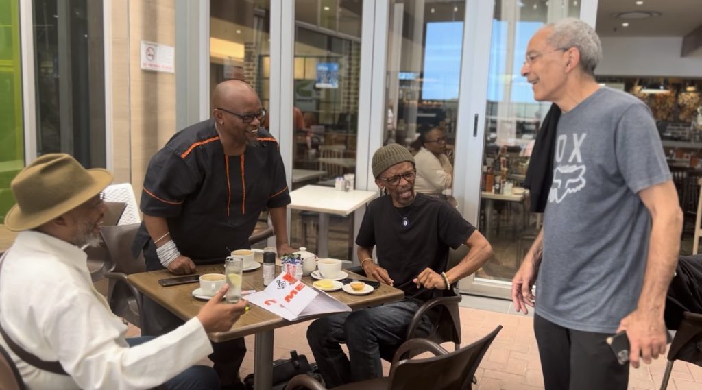 In preparation for my radio jazz show, “Sunset Serenade,” I had the delightful opportunity to share brunch with McCoy Mrubata at the Rosebank Mall yesterday. Joining us were Paul Hanmer, a seasoned musician with whom McCoy has collaborated for decades, and Leslie Dikeni, an accomplished author whose latest book delves into the intricacies of jazz agency. Together, we journeyed down memory lane, reminiscing about Johannesburg’s vibrant jazz scene of yesteryear. We fondly recalled iconic venues like Kippie’s at the Market Theatre complex in Newtown, the Cotton Pub in Hillbrow, and the nostalgic ambiance of Sof’town, evoking the spirited essence of the legendary Sophiatown in Joubert Park.