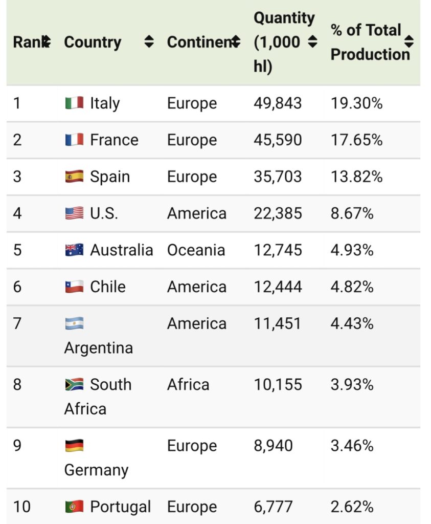 Here’s a full list of the world’s biggest wine producers by country.