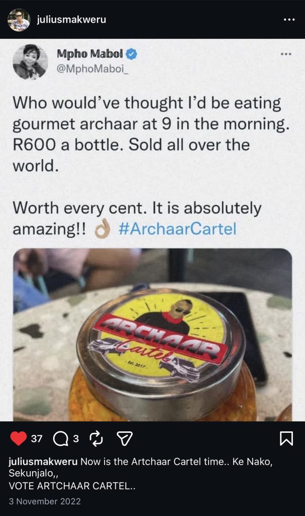 Looking back, I realise that every one of these moments – from a fictional father secretly refilling a whisky bottle, to a tomato magnate in Limpopo, to my friends perfecting their homemade atchaar – underscores something far bigger than marketing. Branding is ultimately about identity. And identity, whether personal or corporate or national, is a contract of meaning.