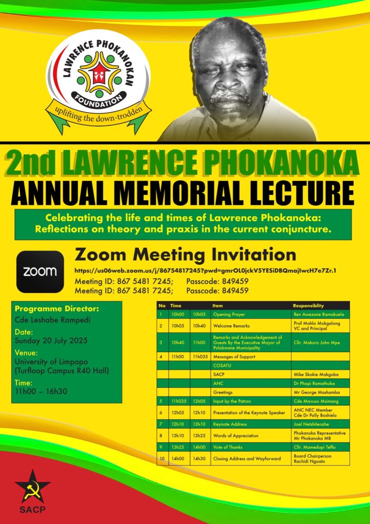 This year’s theme, “Celebrating the Life and Times of Lawrence Phokanoka: Reflections on Theory and Praxis in the Current Conjuncture”, invites South Africans to re-examine the connection between progressive ideas and practical action in today’s socio-economic context.