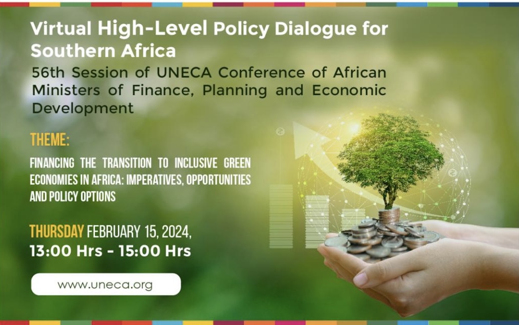 She was speaking in her capacity as Chair of Inter-governmental Committee of Senor Officials and Experts (ICSOE), at the Virtual High-level Policy Dialogue organized by the United Nations Economic Commission for Africa (ECA), Sub-Regional Office for Southern Africa (ECA SRO-SA) on the theme of the 2024 ECA Conference of African Ministers of Finance, Planning and Economic Development (COM), “Financing the transition to Inclusive Green Economies in Africa: Imperatives, Opportunities and Policy options”.