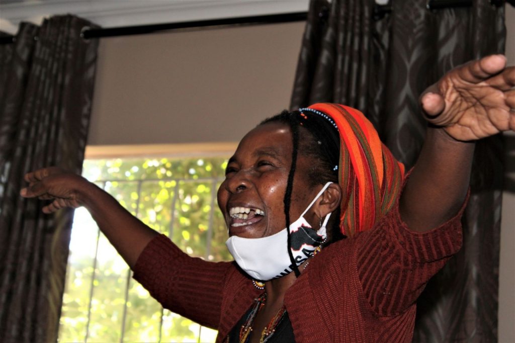 Dr Hluma Zakaza entertains her comrades with a praise poem rendition
